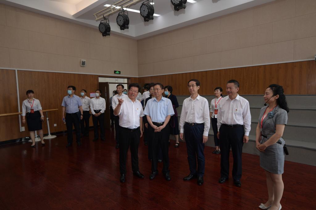 郝明金来到学校艺术中心,认真听取了学生技能成果汇报,先后走进舞蹈室、ICF康复实验室、钢琴室、校企合作室、博士工作站、技能拓展实训室、博雅书苑等馆室。在舞蹈室、钢琴室和艺术中心剧场观看了儿童舞蹈创编和特教手语表演。随后,仔细查看了学校在专业建设、人才培养、交流合作、社会服务等方面取得的成绩,了解到学校的发展轨迹,看到了学校办学所取得的丰硕成果,深切感受到建设奋进师专、开放师专的坚定与持恒,充分肯定了学校取得的成绩,强调要继续坚持特色。