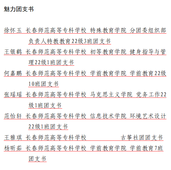 近日,我校在2023年长春市学校共青团“活力团支部”“魅力团支书”“优秀团建指导员”寻访活动中喜获佳绩。