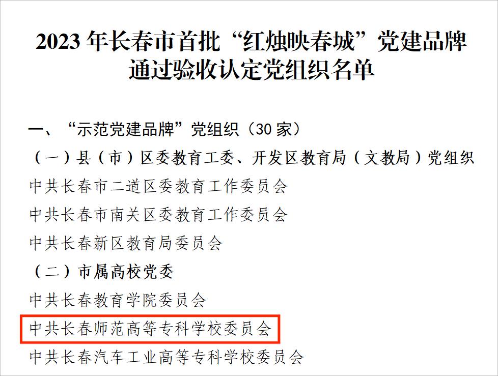 祝贺我校在2023年长春市教育系统首批“红烛映春城”党建品牌验收工作中被认定为“示范党建品牌”党组织