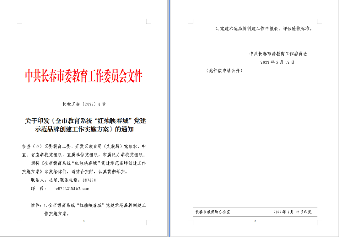 为促进教育系统党建工作高质量发展,在全市创建一批内涵深刻、特色鲜明、作用发挥好、示范引领强的教育党建工作品牌,长春市委教育工作委员会组织开展了“红烛映春城”党建示范品牌创建工作。