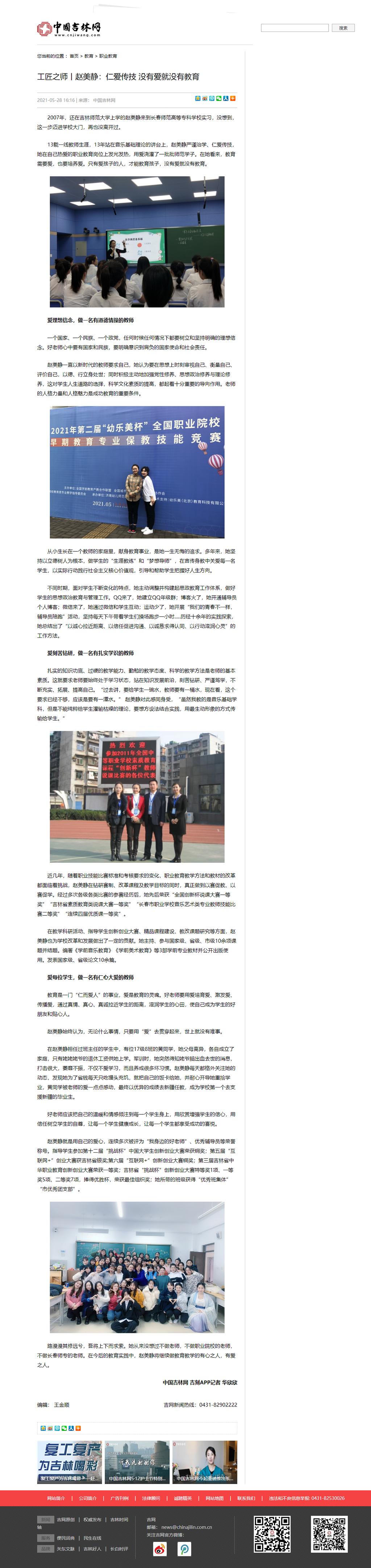工匠之师丨赵美静:仁爱传技 没有爱就没有教育-国产一区二区日本在线-Changchun Normal College-官方网站